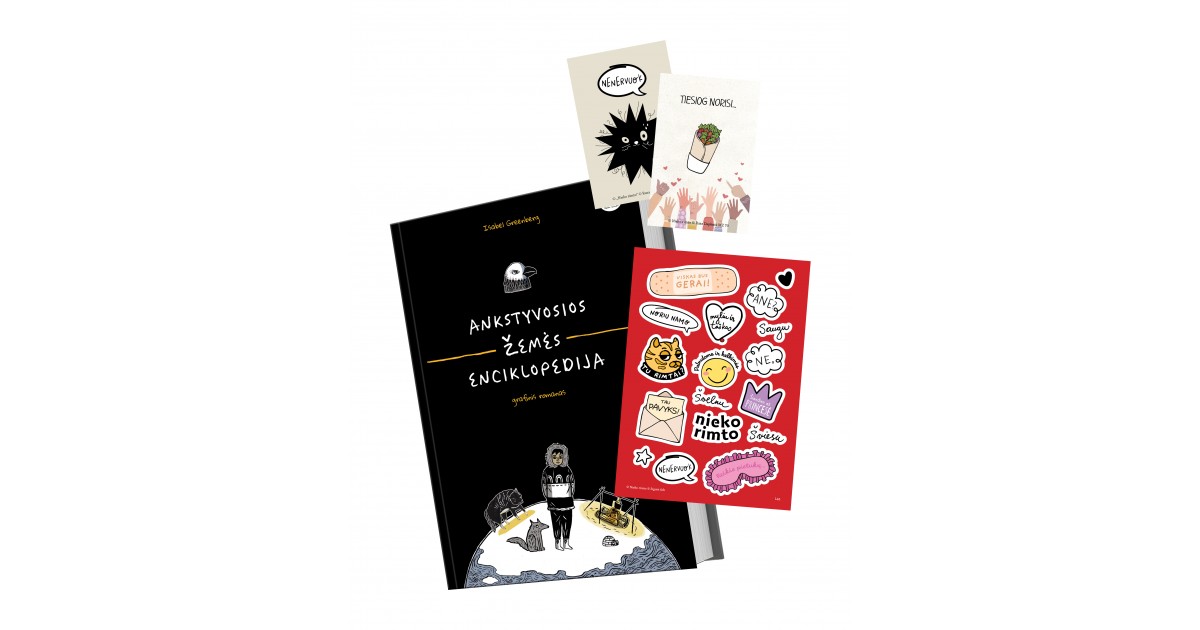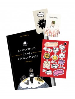 Dovanų rinkinys „Komiksų mėgėjui“ maloniai nustebins subtilia ironija bei skoningu humoru. Grafinis romanas „Anstyvosios žemės enciklopedija“ įtrauks į kvapą gniaužiančius nuotykius, kurie galėjo vykti daugelį metų prieš mums gimstant (arba galėjo ir nevykti, vaizduotė išsiaiškins pati). Dievai, siaubūnai, pamišėliai karaliai, paslaptys, klaidinantis mokslas, niekam tikę žemėlapiai ir dar daug visko įdomaus stebins ir žavės kiekviename knygos puslapyje. O paskaičius apie priešistorinį pasaulį, bus smagu papuošti ir savąją – šmaikščiais įsegamais ženkliukais ar spalvingais (ir iškalbingais) lipdukais.
